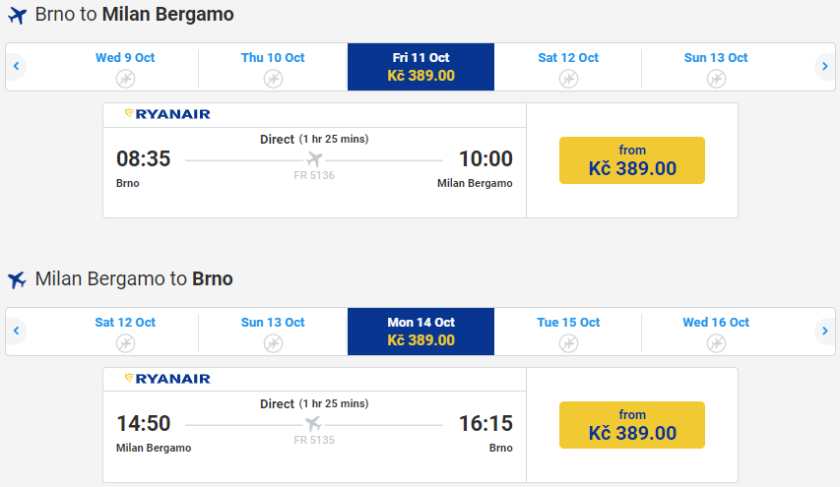 - Čeká tě přestup na letišti Přímé lety z Brno na letiště Milán Bergamo