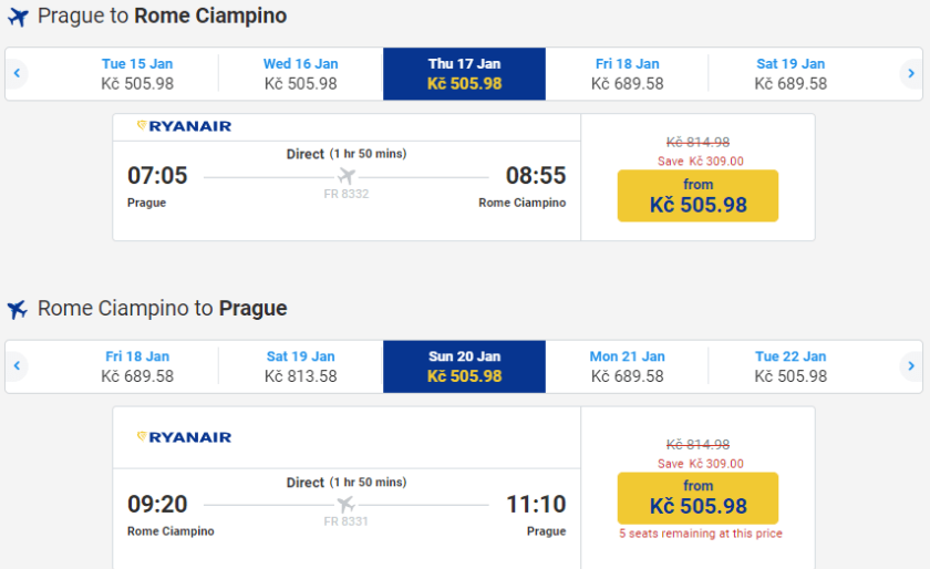 - Čeká tě přestup na letišti Přímé lety z Prahy na letiště Řím Ciampino.