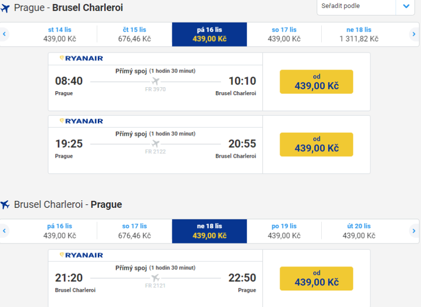 Čas cestování k moři pomalu končí a blíží se podzimní období ideální k městským víkendovým eurotripům. Ideální příležitost přináší Ryanair na své lince do belgického Charleroi. Zpáteční letenky za 878 Kč sice nejsou na této trase ničím tak výjimečným, nicméně většinou se objevují na termíny přes týden. Tentokrát si vyrazíte na čistokrevné víkendy od pátku do neděle během celého listopadu. Dostupné jsou i krátké 24hodinové termíny sobota-neděle a dokonce i pondělní či páteční lety na otočku – ráno tam, večer zpět.