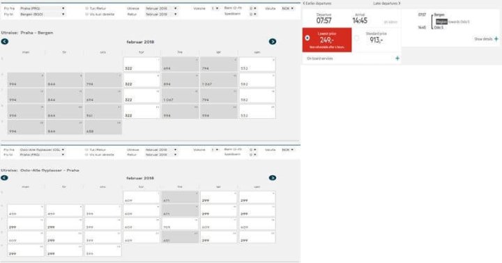 Jednosměrná letenka z Prahy do Bergenu pak vyjde na 322 NOK / 890 Kč, z Osla zpět do Prahy pak na 299 NOK / 830 Kč. Je jen na vás, jaký směr zvolíte, lze nakombinovat jak trasu Praha – Bergen – Oslo – Praha, tak opačně Praha – Oslo – Bergen – Praha. Nejlevnější letenky koupíte na norské jazykové mutaci webu, ta anglická čaruje s přepočtem kurzu a může vás tak natáhnout o desítky korun.
