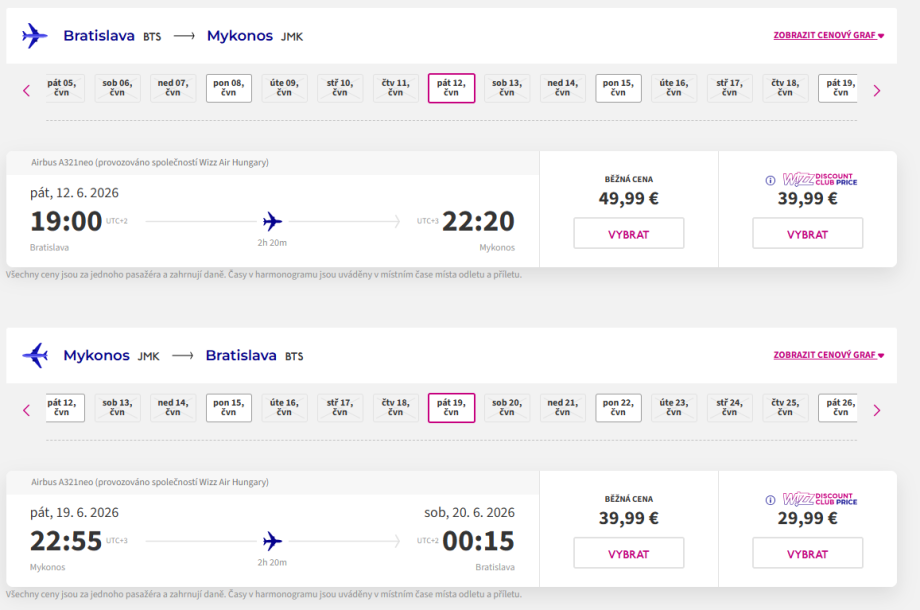 Letecká společnost Wizz Air spouští novou přímou linku mezi Bratislavou a řeckým Mykonosem. První let je plánován na 8. června 2026 a letenky jsou již v prodeji.