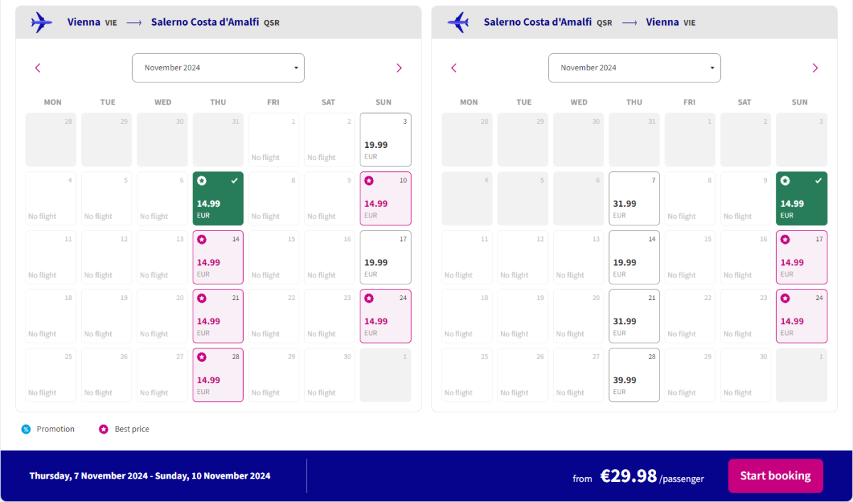 Od konce října začne létat z Vídně nebo Katowic na letiště Salerno/Amalfi, které po dlouholeté pauze bez pravidelných linek obnovilo provoz teprve letos.
