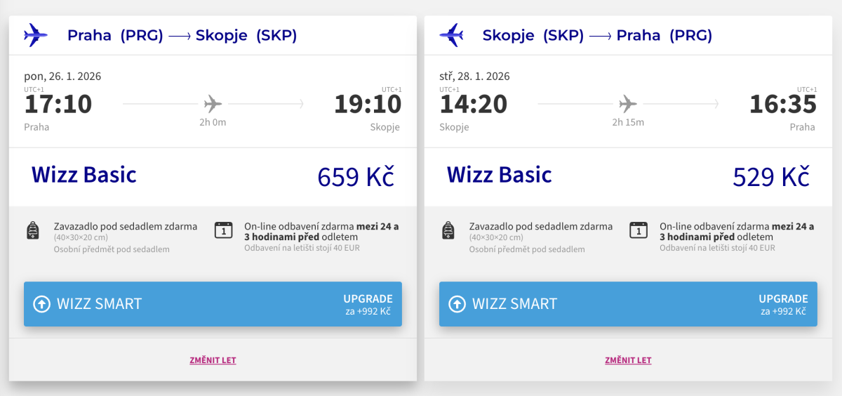 Konečně Wizz nabídnul z Prahy něco rozumného. Odlet v pátek odpoledne, návrat v pondělí po obědě – super časy a hlavně dobrá cena. Bereme to a letíme!