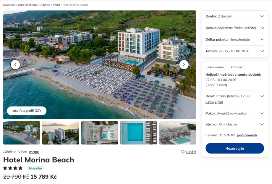 První termíny z Prahy jsou plánovány na 27.5. – 3.6. 2026 s délkou pobytu 8 dní. Létá se nově přímo na letiště ve Vloře, což znamená pohodlný přílet přímo do letoviska bez nutnosti dlouhého transferu.