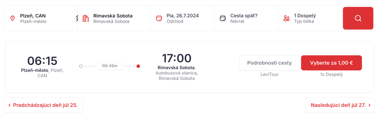 Novou autobusovou linku slovenského dopravce LeviTour můžete aktuálně vyzkoušet s cenou za 1 EUR na libovolné kombinaci zastávek po trase Plzeň – Praha – Brno – Bratislava – Trnava – Nitra – Zvolen – Detva – Lučenec – Rimavská Sobota.