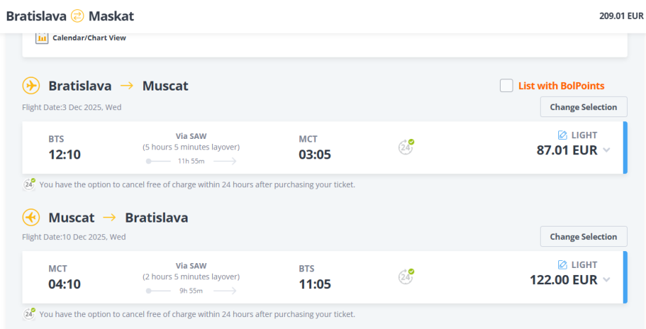 Turecká nízkonákladová společnost Pegasus Airlines má aktuálně akci na letenky do ománského hlavního města Maskat. Zpáteční letenky pořídíte z Bratislavy za 209 EUR, z Prahy za 236 EUR.