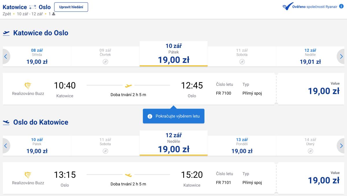 Levných letenek do hlavního norského města Osla můžete stále využít v průběhu září z Katovic. Zpáteční lety např. od pátku do neděle vás vyjdou jen na pouhých 38 PLN. V druhé polovině září seženete taktéž letenky z Vídně na letiště Torp nedaleko Osla s přímými autobusovými spoji.