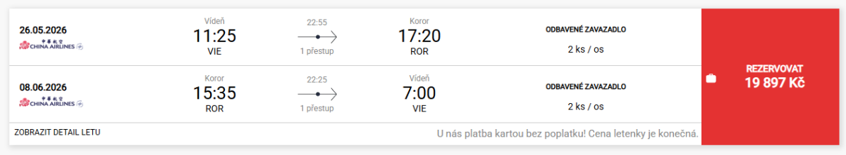Letecká společnost China Airlines aktuálně nabízí výhodné zpáteční letenky na Palau – malý ostrovní stát v Tichém oceánu, který patří mezi nejvyhledávanější destinace pro milovníky potápění.
