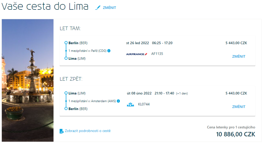 Akční letenky do Jižní Ameriky se objevují po opravdu dlouhé době a rovnou do jedné z nejžádanější destinace – Peru. Zpáteční letenky z Berlína do hlavního města Limy pořídíte na celé zimní období za parádních 10 886 Kč. Nejlevněji pořídíte letenky přímo přes web aerolinky KLM.