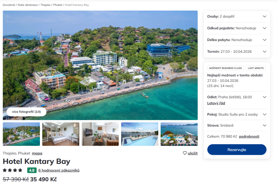 CK Čedok aktuálně nabízí dvoutýdenní zájezd na thajský Phuket za akční cenu 35 490 Kč za osobu. Na přelomu března a dubna vás čeká 15 dní (14 nocí) v jedné z nejoblíbenějších destinací jižního Thajska.