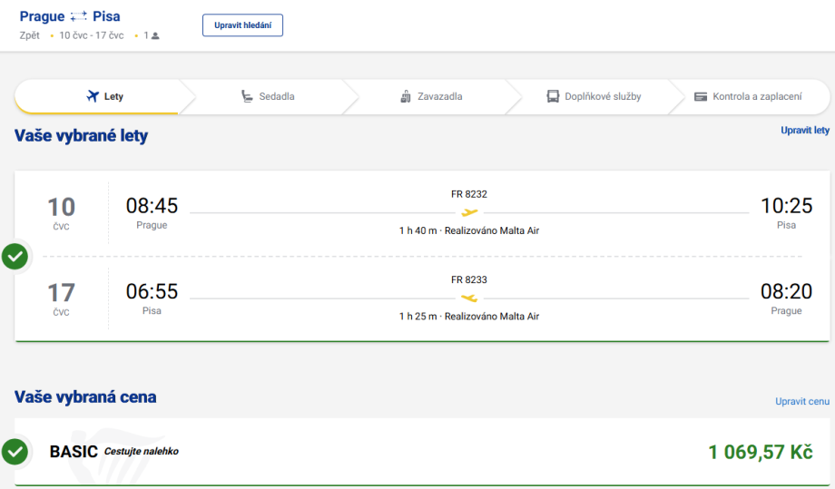 - V ceně je příruční zavazadlo do 40×30×25 cm