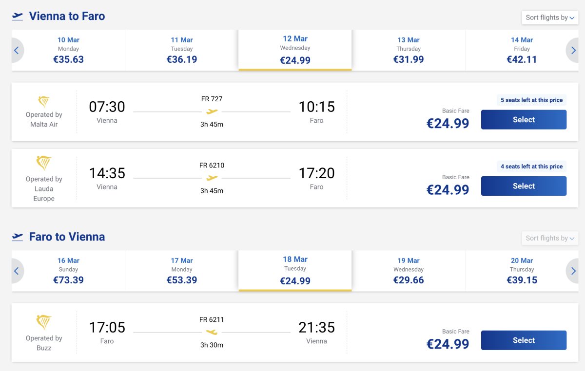 Leťte z Vídně do portugalského Faro s Ryanairem v březnu už za 50 EUR. Nejvýhodnější ceny jsou na týdenní pobyty, ale skvělou volbou je i prodloužený víkend 7. – 10. března za 78 EUR. Užijte si slunce, pláže a kouzelné Algarve za skvělou cenu.