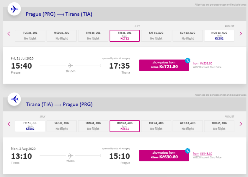 A rovnou k cestě do první jmenované země, Albánie, lákají skvělé ceny na nově zavedené lince Wizz Airu z Prahy do hlavního města Tirany. Na prázdninové termíny pořídíte zpáteční letenky od 1 353 Kč bez členství ve věrnostním klubu WDC, resp. už za 989 Kč se členstvím, které se vyplatí přikoupit již při první cestě, pokud cestujete alespoň ve dvou.