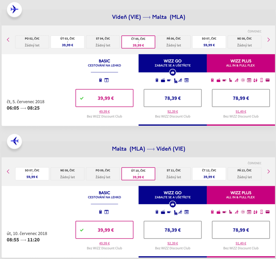 Ceny jsou uvedené pro členy Wizz Discount klubu, kde členství pro 2 osoby stojí 30 € a případně pro 6 osob 60 € na jeden rok během kterého budete využívat zlevněných letenek o 10 € za let. Při prosté matematice zjistíte, že úspora 40 € za dvě zpátečních letenky zaplatí případné členství.