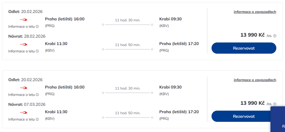 Cestovní kancelář Čedok má v nabídce další výhodné zpáteční letenky z Prahy do thajského Krabi za 13 990 Kč.