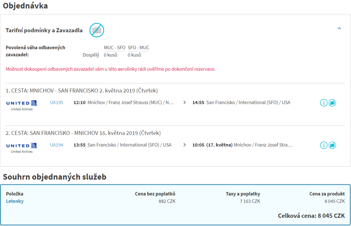 - V ceně je V ceně jen příruční 55 x 35 x 25 cm + kabelka/laptop. Odbavené za 50 € jedním směrem.