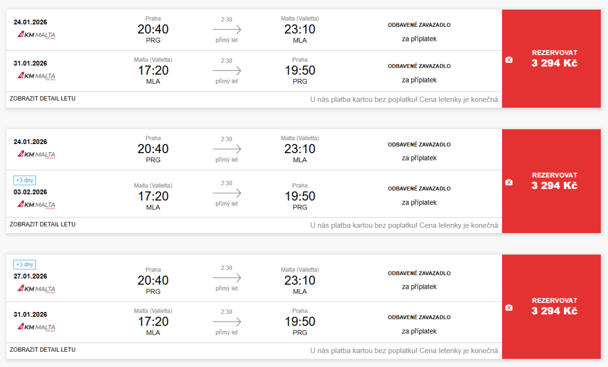 Přímé lety z Prahy na Maltu během zimy. Letenky od 3 294 Kč
