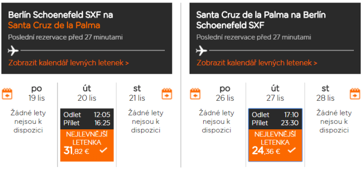 EasyJet vpustil do prodeje letenky na zimní období a jak je u tohoto oranžového low-costu většinou zvykem, čím dříve letenky nakoupíte, tím levnější budou. Protože plánování dlouho dopředu na zimní víkend v evropských metropolích se moc nevyplatí, využijeme oblíbenou přímou linku z berlínského letiště Schönefeld na jeden z nejexotičtějších kanárských ostrovů La Palma. Nejlevnější spojení vyjde na 57 € / 1.445 Kč.