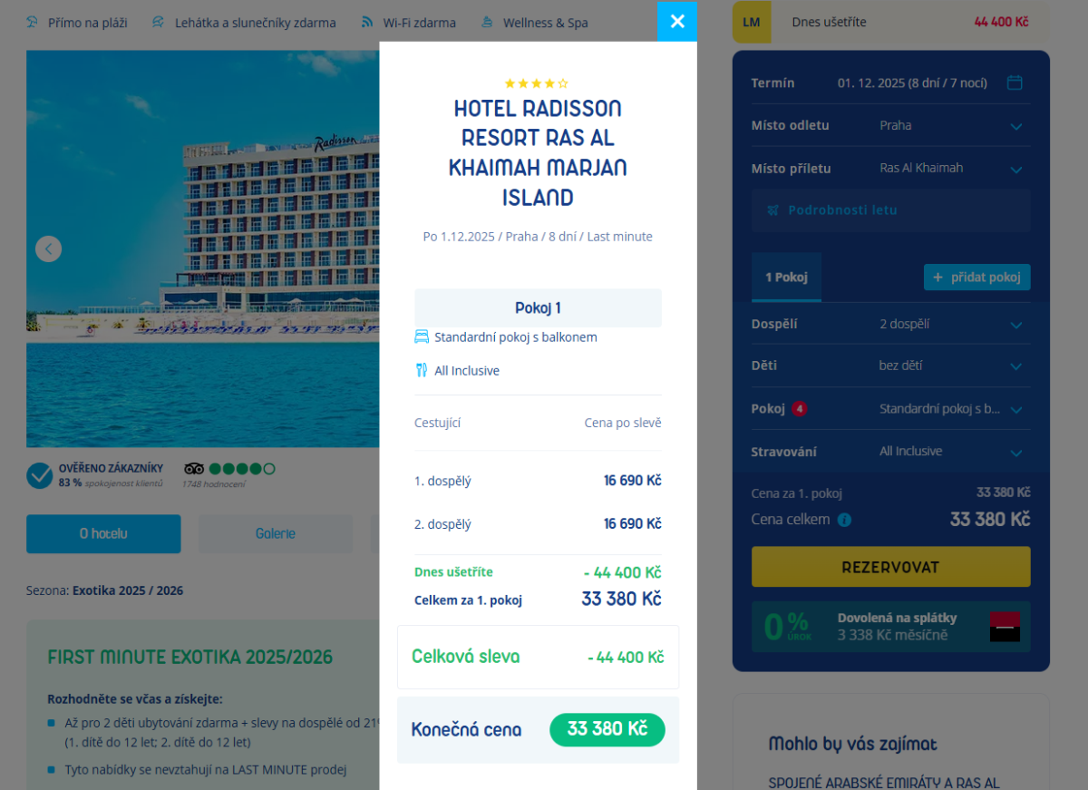 Další zájezdy do Spojených arabských emirátů si můžete snadno porovnat v našem vyhledávači podle ceny, termínu či úrovně hotelu.