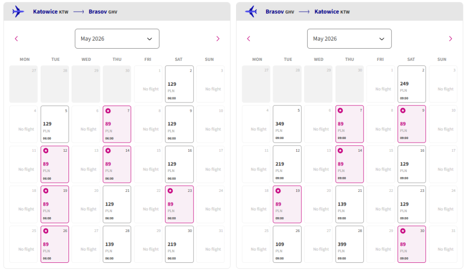Zpáteční letenky na mnoho termínů v dubnu, květnu, září i říjnu zakoupíte za 178 PLN, resp. 170 PLN pro WDC.