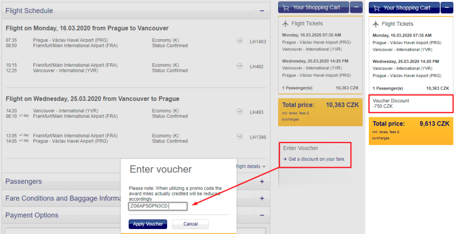 Ani německý vlajkový dopravce nenechá naše peněženky v klidu. V rámci dnešních pátečních akcí zveřejnila Lufthansa slevový kód na letenky s odletem z Prahy. Slevu do výše 750 Kč lze uplatnit na základní cenu bez tax a poplatků. Prakticky celou částku bez problému odečtete u letenek na transatlantických letech, u evropských destinací je to různé, u některých letenek se sleva projeví jen v řádech korun, vždy záleží na výše základní ceny tarifu.