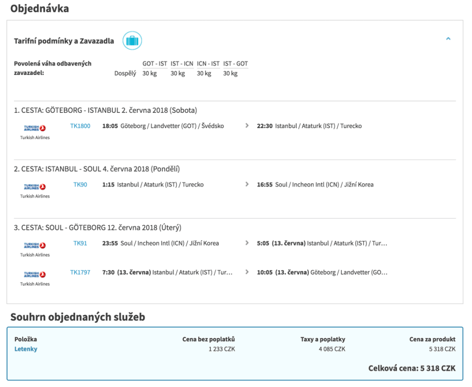 S Turkish přes Göteborg a Istanbul až do Jižní Koreje. Letenky od 5 318 Kč