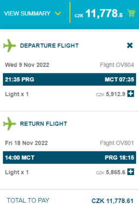 Ceny letenek startují na 11 770 Kč, což je aktuálně nejnižší cenová nabídka z Prahy do Ománu. Je však třeba zdůraznit, že při vychytání akčních letenek do Dubaje cesta přes Emiráty může vyjít i o třetinu levněji. Každopádně uvidíme, zda jsou tyto ceny konečné nebo se budou objevovat akce. Hlídat samozřejmě budeme i případné zájezdy do Ománu, které by mohly těchto linek využít.