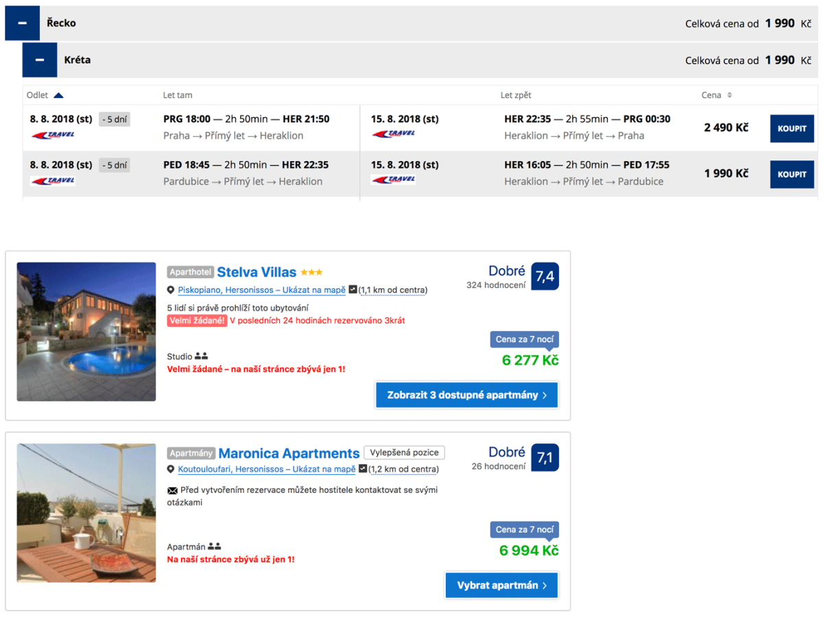Výhodných last–minute letenek s odletem z Pardubic či Prahy od 1 990 Kč do krétského Herakliónu lze využít k individuální dovolené u moře na poslední chvíli. Zatímco nabídky cestovek do Řecka v nadcházejících dnech atakují spíše částky okolo 9 000 Kč, vy si budete schopni poskládat stejnou dovolenou na Krétě mezi 5–6 tisíc korun za osobu.