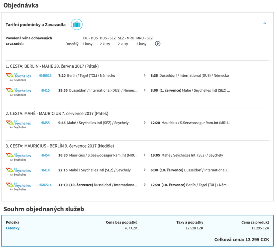 - V ceně je V ceně je příruční i zapsané zavazadlo o maximální hmotnosti 23 kg. Při cestách zahrnující Mauricius jsou v ceně dvě odbavená zavazadla.