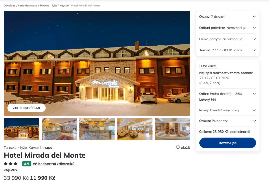 Aktuálně je k dispozici výhodný termín přes Silvestra, a to 27.12. – 3.1., kdy zájezd vychází na 11 990 Kč za osobu.