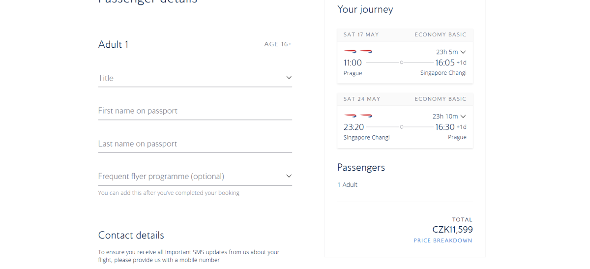 V ceně základního tarifu je občerstvení během letů a příruční a kabinové zavazadlo, které může vážit až ojedinělých 23 kg. Lety z Londýna do Singapuru jsou operovány Airbusem A380 a lety do Malajsie zpravidla Boeingy 787 Dreamlinery.