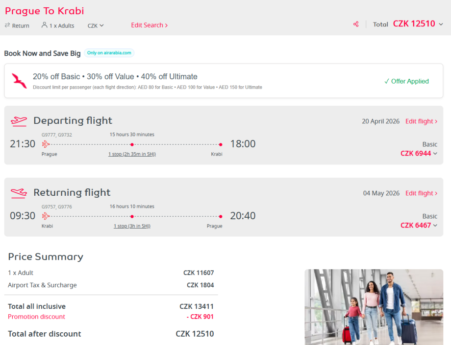 Využijte akci společnosti Air Arabia na zpáteční letenky z Prahy do thajského Krabi. Cestovat můžete v období od 25. března do 15. června 2026.