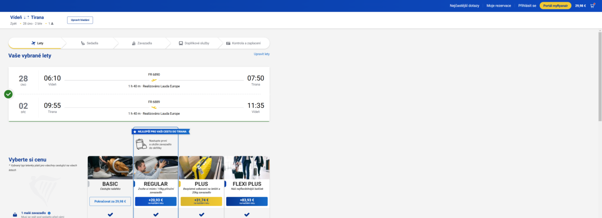 V ceně základního tarifu je tradičně pouze malé příruční zavazadlo určené k umístění pod sedadlo před Vámi.