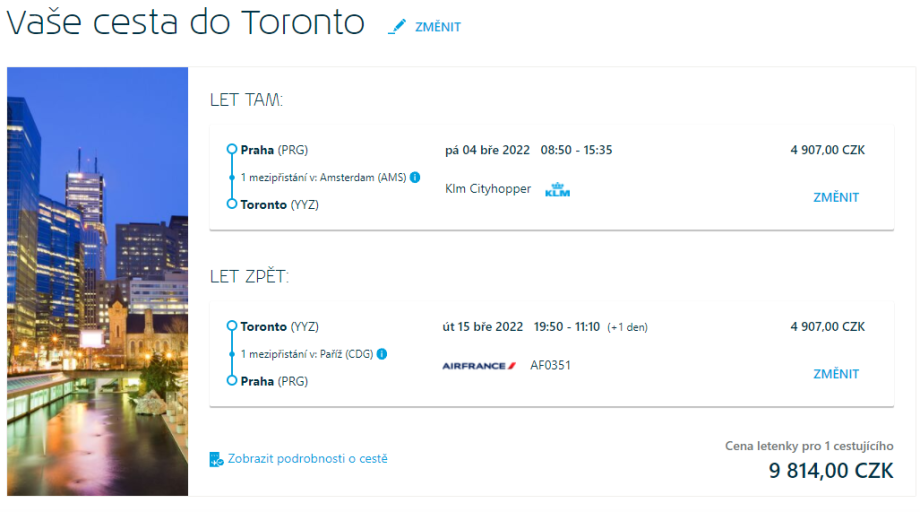 Po levných letenkách s KLM z Prahy do kanadského Vancouveru se objevují i lety pod 10 tisíc Kč na druhé pobřeží Kanady - do měst Toronto a Montreal. Na mnoho termínů od listopadu až do března 2022 zakoupíte zpáteční lety od 9 814 Kč, což je z Prahy naprosto parádní cena.