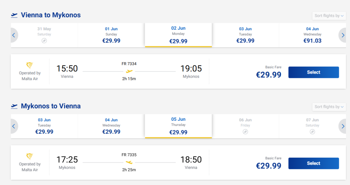 Vydejte se s Ryanairem z Vídně na jeden z řeckých ostrovů. Ať už toužíte po romantických plážích, klidných vesničkách nebo živé atmosféře, tahle akce stojí za pozornost. Zpáteční letenky pořídíte za 60 EUR.