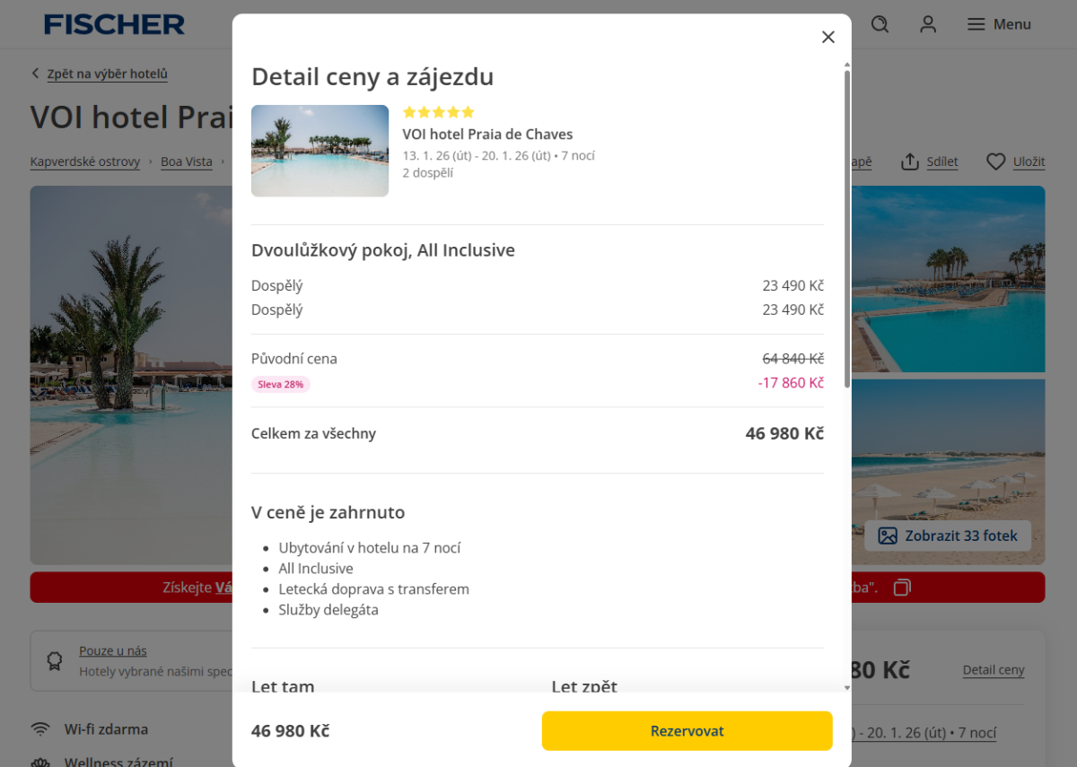 Cestovní kanceláře Fischer a Exim Tours nabízejí týdenní zájezd v termínu 13.1. – 20.1. Čeká vás pobyt v luxusním 5* hotelu VOI Praia de Chaves, který se nachází přímo u stejnojmenné pláže.