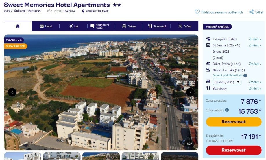 - Sweet Memories Hotel Apartments (Protaras) za 7 685 Kč / osoba
