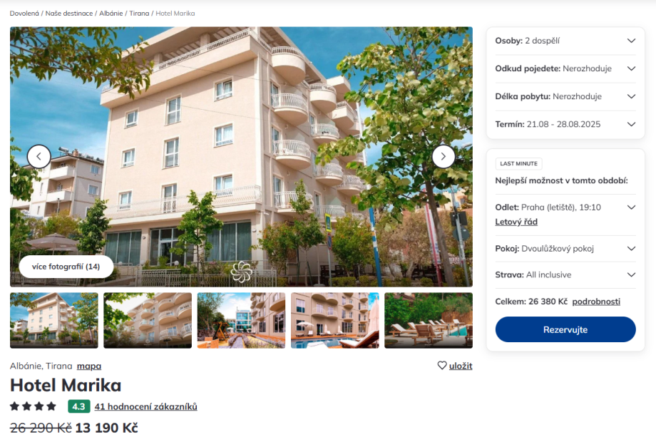 Nevyhovuje vám tento hotel nebo termín? Kompletní nabídku zájezdů do Albánie si můžete snadno porovnat v našem srovnávači.