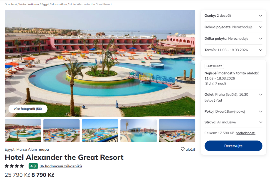 Pokud vám nevyhovuje právě tento hotel nebo daný termín, můžete si v našem srovnávači jednoduše porovnat také další zájezdy do Egypta podle destinace, ceny nebo délky pobytu.