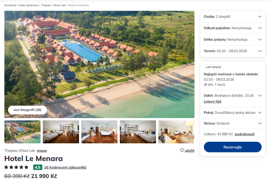 Aktuálně nejvýhodnější nabídku do této oblasti přináší cestovní kancelář Čedok. V termínu 2.2. – 10.3. vás týdenní dovolená vyjde na 21 990 Kč za osobu.