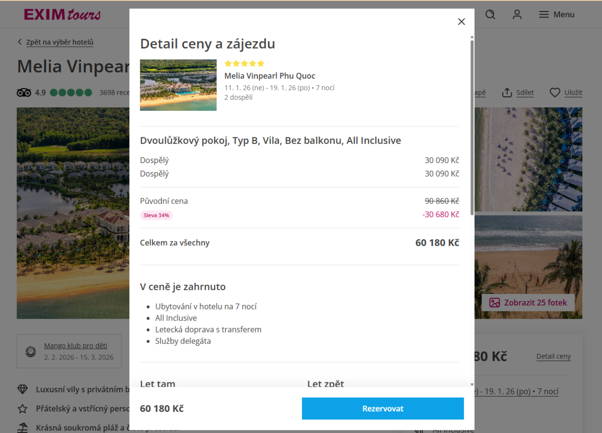 Jedná se o týdenní pobyt v termínu 11.–19. ledna za 30 090 Kč na osobu. Cena zahrnuje all-inclusive stravování.