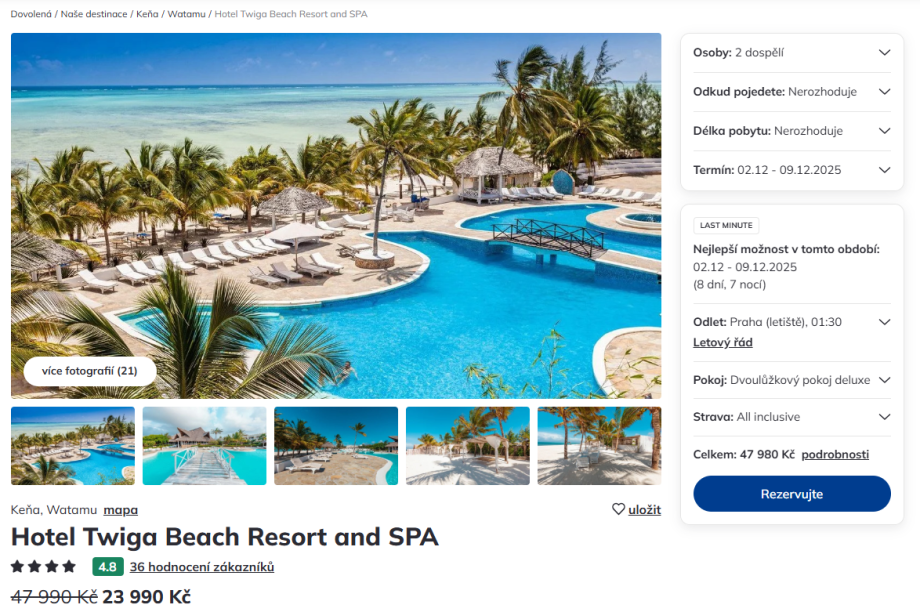 Další nabídky zájezdů do Keni si můžete porovnat v našem vyhledávači podle ceny, termínu a typu hotelu.