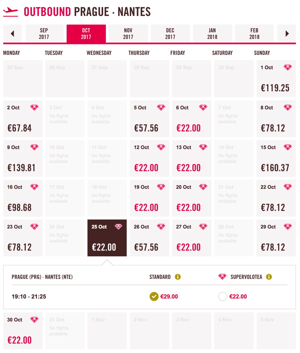 Všechny letenky rezervujete na volotea.com bez nutnosti členství. Největší dostupnost termínů je po čas podzimu, výjimkou však nejsou ani prázdninové víkendy.