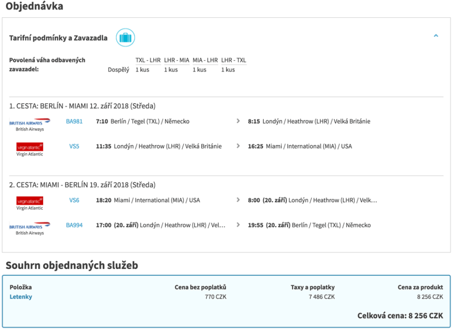 Letecká společnost Virgin Atlantic uvolnila do koloběhu zvláštní tarif, který nacenil zpáteční letenky z Mnichova či Berlína napříč všemi destinacemi, kam Virgin létá, na pouhých 8 248 Kč. Tato akce není jen levnější alternativa pro západočechy k včerejší akci s odletem z Vídně od 7 495 Kč, neboť v tomto případě je zapsané zavazadlo do 23 kg v ceně.