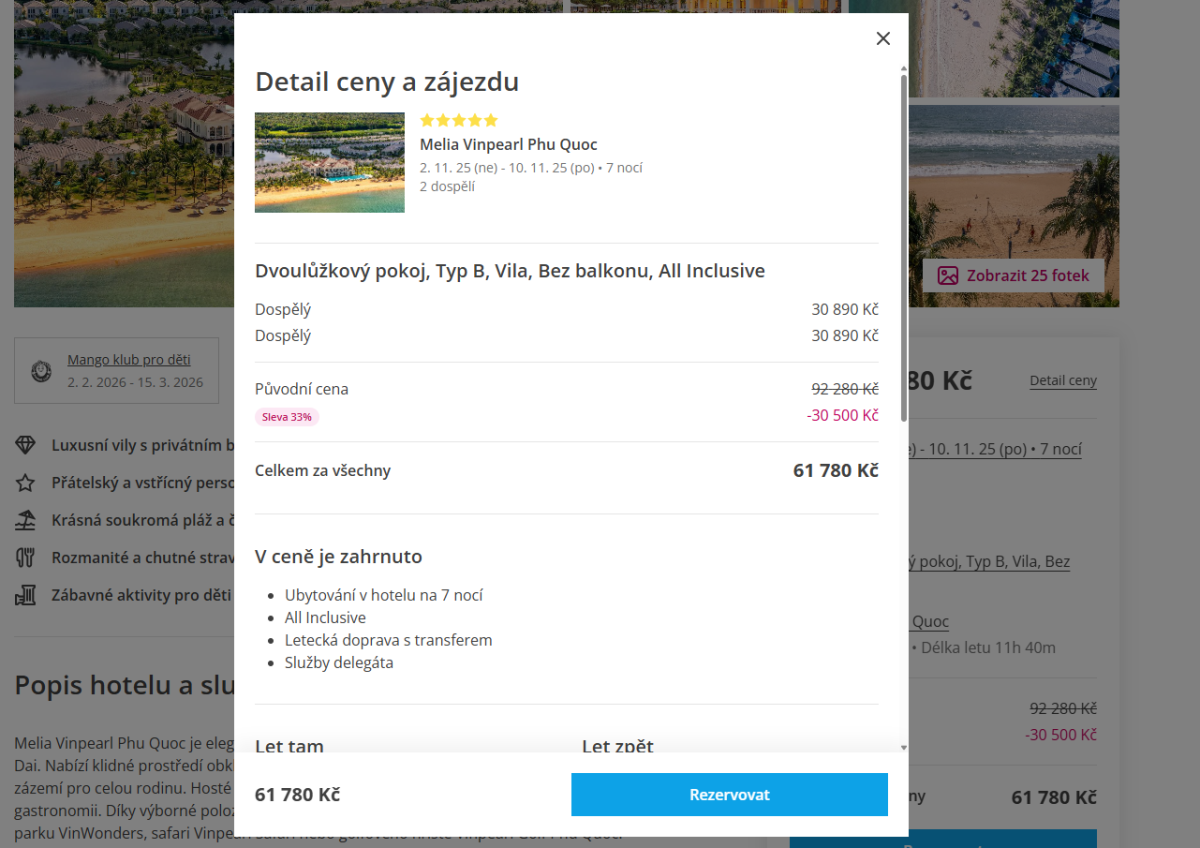 Týdenní zájezd s all-inclusive stravováním a přímým letem z Prahy vychází na 30 890 Kč za osobu. Ubytování budete v 5* hotelu Melia Vinpearl Phu Quoc, který se nachází přímo u soukromé pláže.