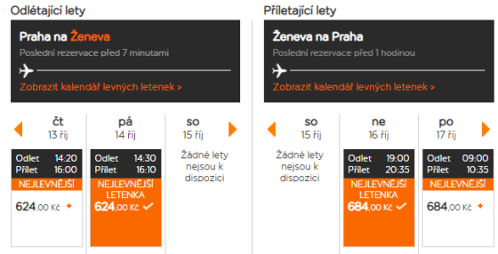 Čistě víkendových letenek maximálně s nutností půldenního volna během pátku z Prahy není moc a těch za výhodné ceny pak naprosté minimum. Světlou výjimku přináší aerolinka easyJet na trase mezi Prahou a švýcarskou Ženevou, kdy zpáteční letenky od pátku od neděle pořídíte za 1 308 Kč na celé září a říjen.