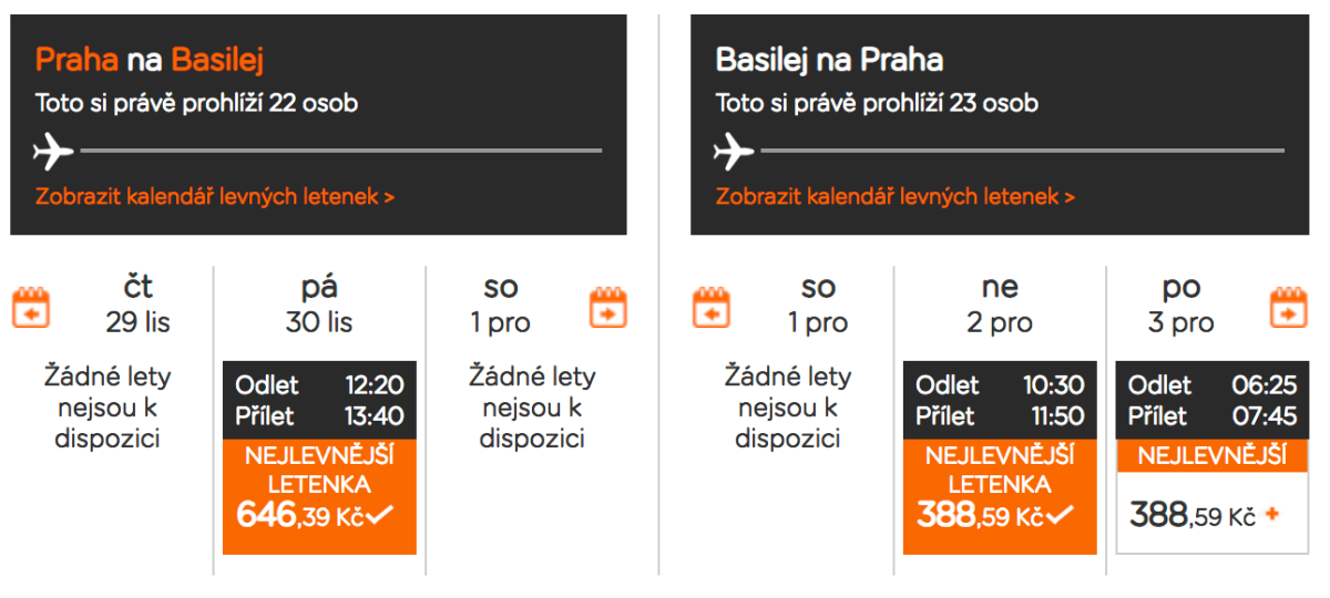Letenky od pátku do neděle nabízí easyJet za 1 035 Kč při cestě dvou osob. Poletí–li vás více, cena nepatrně ještě klesne. K dispozici za uvedenou cenu jsou všechny adventní víkendy od 23. listopadu do 16. prosince.