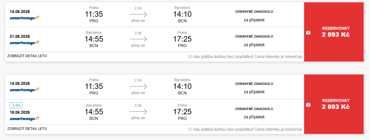 Ulovte si ještě poslední výhodné letenky a naplánujte si dovolenou ve slunečném Španělsku. Smartwings mají stále v nabídce zpáteční letenky z Prahy do Barcelony za cenu 2 893 Kč.