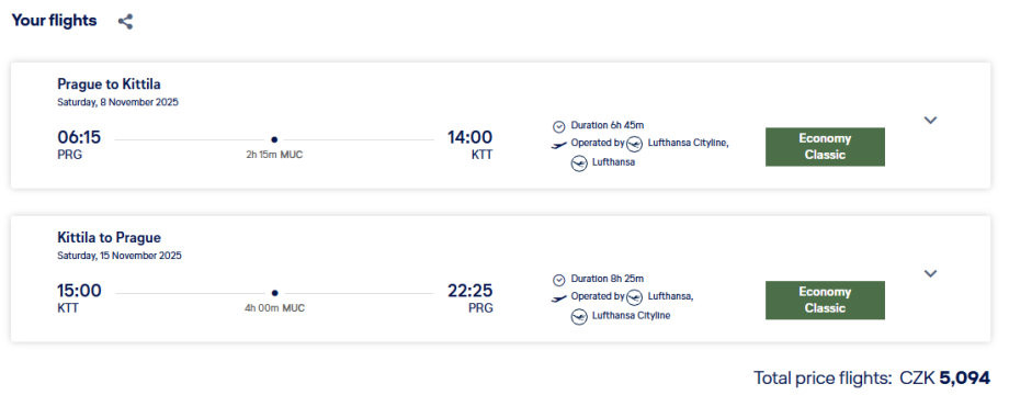 A pokud chcete jen poznávat okolí Kittilä bez zimních sportů, například pozorovat polární záři a užívat si laponskou přírodu, je stále aktivní akce Laponská Kittilä z Prahy s Lufthansou s letenkami od 3 590 Kč.