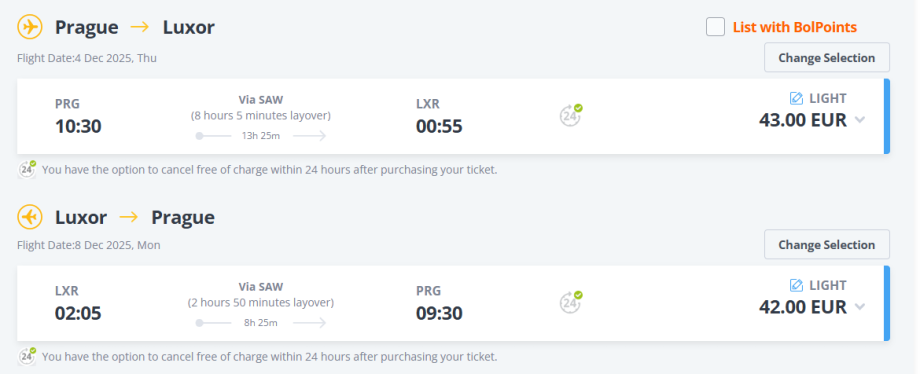 Turecká nízkonákladová společnost Pegasus Airlines nabízí výhodné zpáteční letenky z Prahy do Egypta. Do Luxoru pořídíte letenky za 85 EUR, do Marsa Alam za 98 EUR.